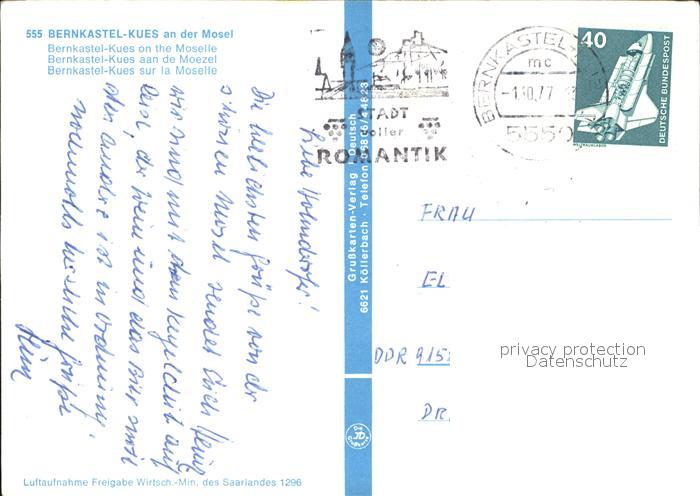 72543073 alte Postkarte BERNKASTEL-KUES Berncastel Rheinland-Pfalz Luftaufnahme postalisch gelaufen Erhaltung siehe scans [KathaD75 kv015box] KatCode: 11110007231008