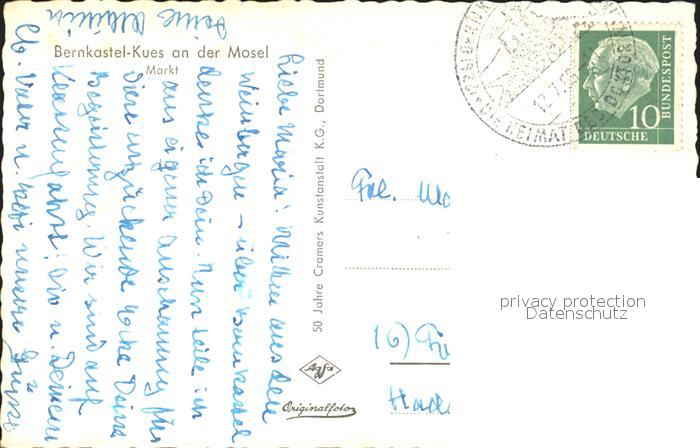 72271072 alte Postkarte BERNKASTEL-KUES Berncastel Rheinland-Pfalz Markt Brunnen postalisch gelaufen Erhaltung siehe scans KatCode: 11110007231008