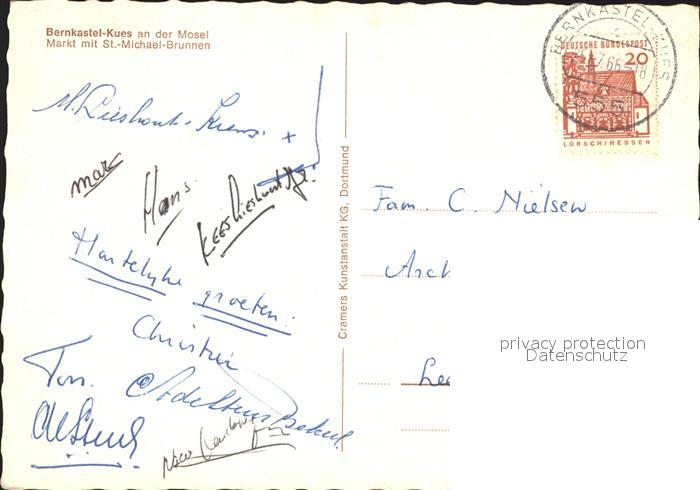 72246281 alte Postkarte BERNKASTEL-KUES Berncastel Rheinland-Pfalz Markt Sankt Michael Brunnen postalisch gelaufen Erhaltung siehe scans KatCode: 11110007231008