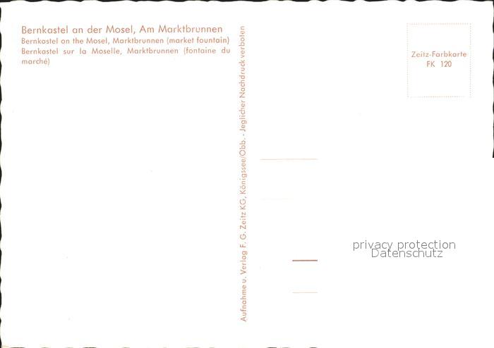 72326550 BERNKASTEL-KUES Berncastel Rheinland-Pfalz Marktbrunnen postalisch nicht gelaufen Erhaltung siehe scans KatCode: 11110007231008