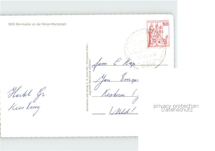 72259057 alte Postkarte BERNKASTEL-KUES Berncastel Rheinland-Pfalz Marktplatz postalisch gelaufen Erhaltung siehe scans KatCode: 11110007231008