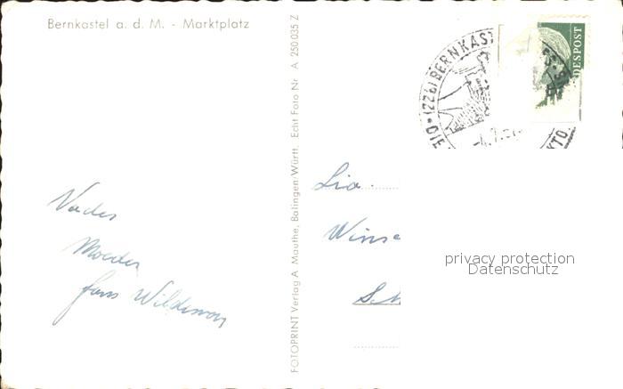 72062238 alte Postkarte BERNKASTEL-KUES Berncastel Rheinland-Pfalz Marktplatz mit Brunnen postalisch gelaufen Erhaltung siehe scans KatCode: 11110007231008