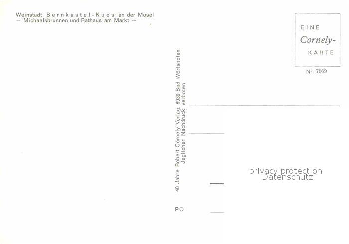 72856169 BERNKASTEL-KUES Berncastel Rheinland-Pfalz Michaelsbrunnen Rathaus Markt postalisch nicht gelaufen Erhaltung siehe scans [NatalD47] KatCode: 11110007231008