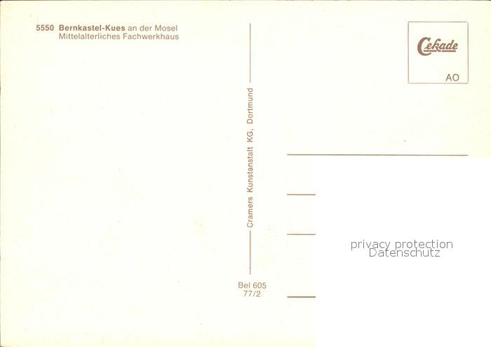 72416450 BERNKASTEL-KUES Berncastel Rheinland-Pfalz Mittelalterliches Fachwerkhaus Inri Kreuz postalisch nicht gelaufen Erhaltung siehe scans KatCode: 11110007231008