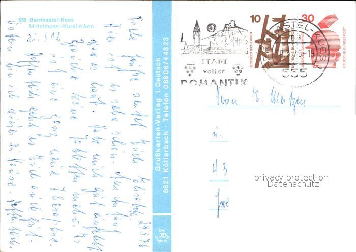 72534108 alte Postkarte BERNKASTEL-KUES Berncastel Rheinland-Pfalz Mittelmosel Kurkliniken postalisch gelaufen Erhaltung siehe scans [FriedD77 kt118box] KatCode: 11110007231008