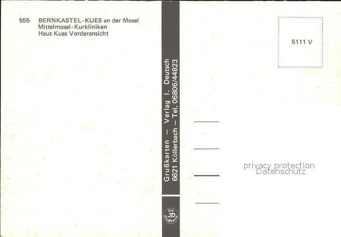 72507698 BERNKASTEL-KUES Berncastel Rheinland-Pfalz Mittelmosel Kurkliniken Haus Kues postalisch nicht gelaufen Erhaltung siehe scans KatCode: 11110007231008