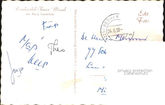 72453023 alte Postkarte BERNKASTEL-KUES Berncastel Rheinland-Pfalz Mosel Burg Landshut postalisch gelaufen Erhaltung siehe scans KatCode: 11110007231008