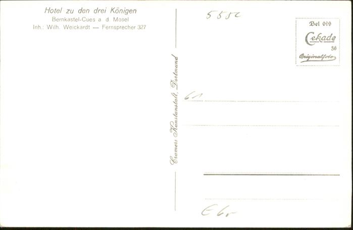 40920122 BERNKASTEL-KUES Berncastel Rheinland-Pfalz Mosel Hotel zu den drei Koenigen postalisch nicht gelaufen Alte Ansichtskarte Postkarte Katcode 11110007231008