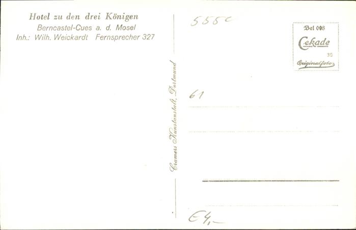 40920128 BERNKASTEL-KUES Berncastel Rheinland-Pfalz Mosel Hotel zu den drei Koenigen postalisch nicht gelaufen Alte Ansichtskarte Postkarte Katcode 11110007231008