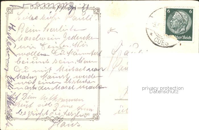 72345126 alte Postkarte BERNKASTEL-KUES Berncastel Rheinland-Pfalz Moselpartie postalisch gelaufen Erhaltung siehe scans KatCode: 11110007231008