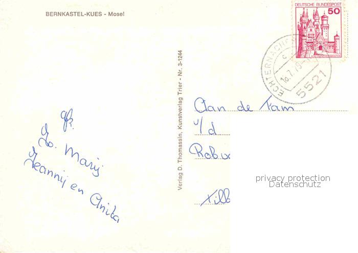 72864991 alte Postkarte BERNKASTEL-KUES Berncastel Rheinland-Pfalz Moselpartie postalisch gelaufen Erhaltung siehe scans [LiesaD40] KatCode: 11110007231008