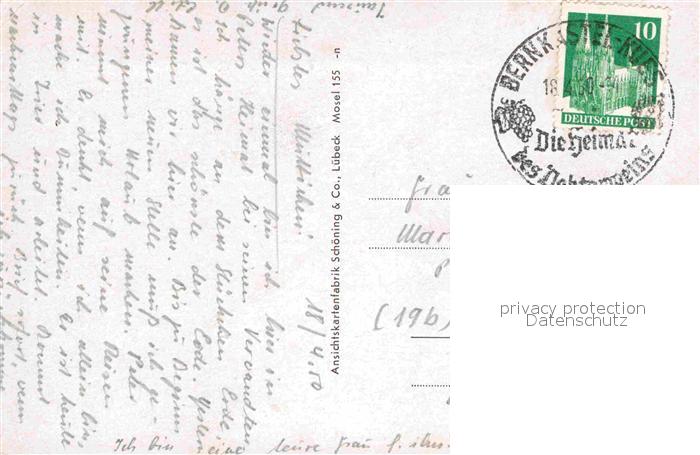 72819061 alte Postkarte BERNKASTEL-KUES Berncastel Rheinland-Pfalz Moselpartie postalisch gelaufen Erhaltung siehe scans [LiesaD40] KatCode: 11110007231008