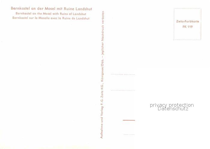 72773238 BERNKASTEL-KUES Berncastel Rheinland-Pfalz Moselpartie mit Ruine Landshut postalisch nicht gelaufen Erhaltung siehe scans [FriedD77] KatCode: 11110007231008