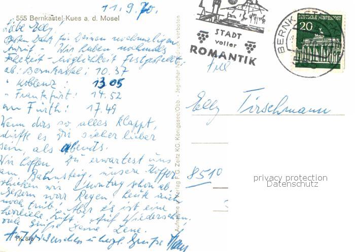 72776565 alte Postkarte BERNKASTEL-KUES Berncastel Rheinland-Pfalz Panorama Bruecke postalisch gelaufen Erhaltung siehe scans [KathaD81] KatCode: 11110007231008