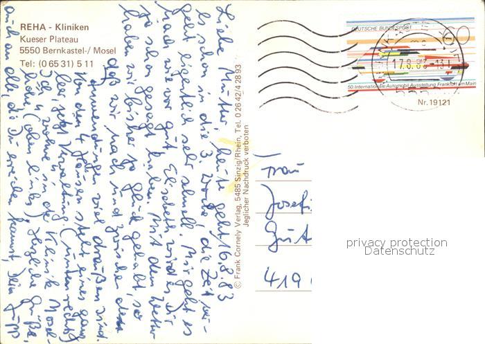 72288354 alte Postkarte BERNKASTEL-KUES Berncastel Rheinland-Pfalz Reha- Kliniken Kueser Plateau postalisch gelaufen Erhaltung siehe scans KatCode: 11110007231008