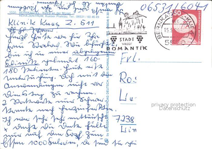 72427025 alte Postkarte BERNKASTEL-KUES Berncastel Rheinland-Pfalz Reha Zentrum postalisch gelaufen Erhaltung siehe scans KatCode: 11110007231008