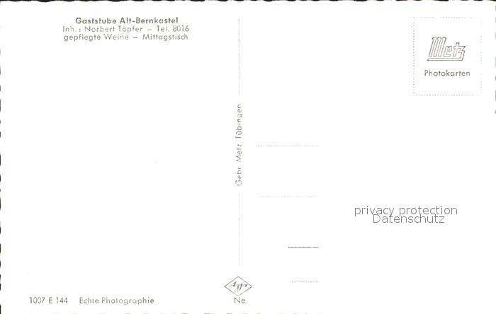 72098262 BERNKASTEL-KUES Berncastel Rheinland-Pfalz Restaurant Alt-Bernkastel postalisch nicht gelaufen Erhaltung siehe scans KatCode: 11110007231008