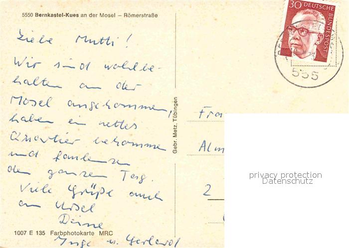 72846556 alte Postkarte BERNKASTEL-KUES Berncastel Rheinland-Pfalz Roemerstrasse postalisch gelaufen Erhaltung siehe scans [KathaD81] KatCode: 11110007231008