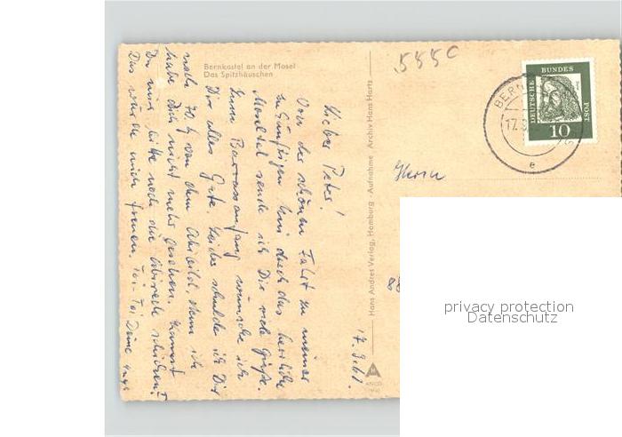 41620168 BERNKASTEL-KUES Berncastel Rheinland-Pfalz Spitzhaeuschen Fachwerk postalisch gelaufen Erhaltung siehe scans Alte Ansichtskarte Postkarte alte Postkarte hz_L Katcode 11110007231008