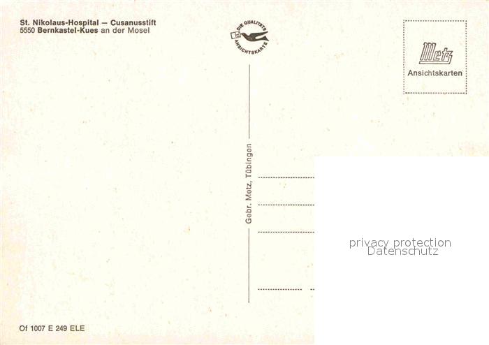 72674701 BERNKASTEL-KUES Berncastel Rheinland-Pfalz St Nikolaus Hospital Cusanusstift postalisch nicht gelaufen Erhaltung siehe scans [WerneD78] KatCode: 11110007231008