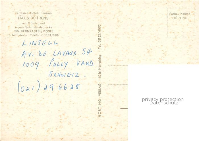 73748145 BERNKASTEL-KUES Berncastel Rheinland-Pfalz Terrassen Hotel Haus Behrens postalisch nicht gelaufen Erhaltung siehe scans [WerneD78] Wern Katcode 11110007231008