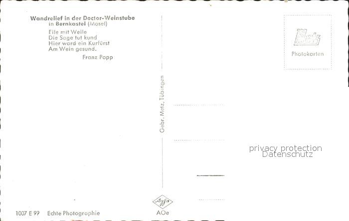 72474764 BERNKASTEL-KUES Berncastel Rheinland-Pfalz Wandrelief in der Doctor Weinstube postalisch nicht gelaufen Erhaltung siehe scans KatCode: 11110007231008