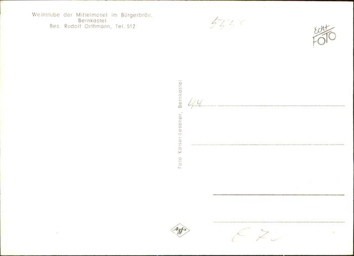 40920071 BERNKASTEL-KUES Berncastel Rheinland-Pfalz Weinstube Mitetlmosel Buergerbraeu * postalisch nicht gelaufen Alte Ansichtskarte Postkarte Katcode 11110007231008