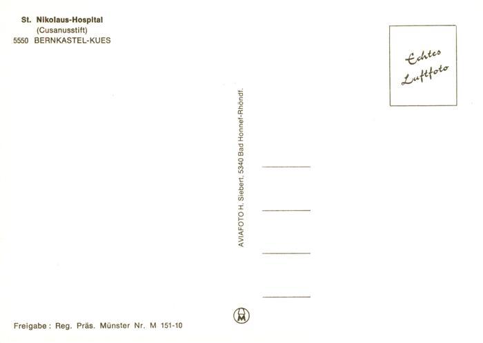 73881026 Bernkastel-Kues Berncastel St Nikolaus Hospital Cusanusstift Fliegeraufnahme postalisch nicht gelaufen Erhaltung siehe scans [WerneD78] KatCode: 11110007231008