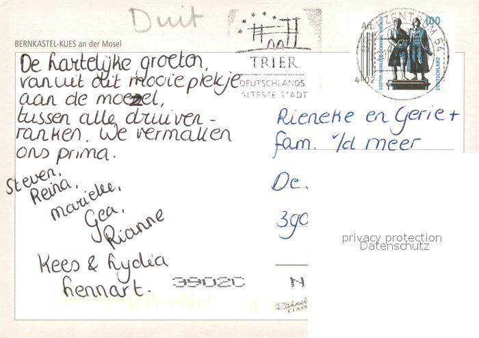 73047834 alte Postkarte Bernkastel-Kues Burg Marktplatz Panorama postalisch gelaufen Erhaltung siehe scans [KathaD81] KatCode: 11110007231008
