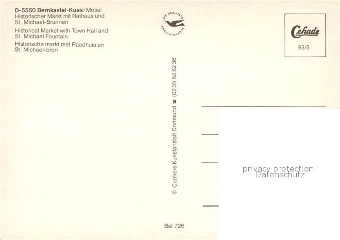 73133039 Bernkastel-Kues Historischer Markt Rathaus St Michael Brunnen Fachwerkhaus Altstadt postalisch nicht gelaufen Erhaltung siehe scans [FriedD77] KatCode: 11110007231008