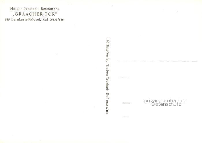 73125169 Bernkastel-Kues Hotel-Pension Graacher Tor postalisch nicht gelaufen Erhaltung siehe scans [PaolaD17] KatCode: 11110007231008