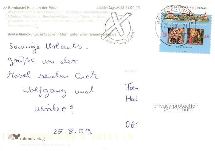 73041887 alte Postkarte Bernkastel-Kues Markt Am Kirchhof Markt Roemerstrasse postalisch gelaufen Erhaltung siehe scans [WerneD78] KatCode: 11110007231008