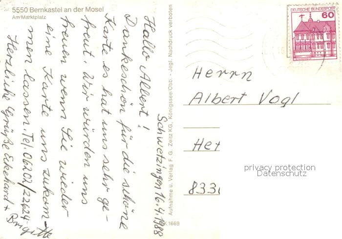 73574851 alte Postkarte Bernkastel-Kues Marktplatz Brunnen Fachwerkhaeuser Altstadt postalisch gelaufen Erhaltung siehe scans [FriedD77] KatCode: 11110007231008