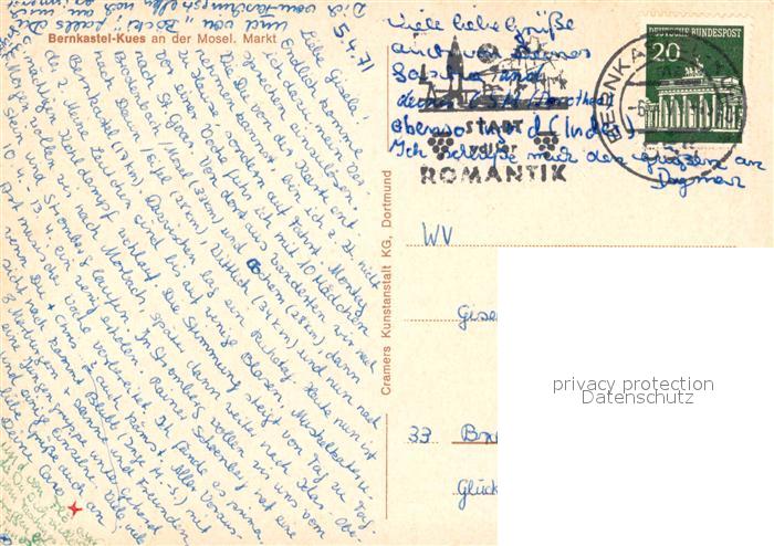 73127249 alte Postkarte Bernkastel-Kues Mosel Markt Fachwerk postalisch gelaufen Erhaltung siehe scans [LiesaD40] KatCode: 11110007231008