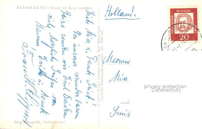 73581856 alte Postkarte Bernkastel-Kues Moselpartie postalisch gelaufen Erhaltung siehe scans [LiesaD40] KatCode: 11110007231008
