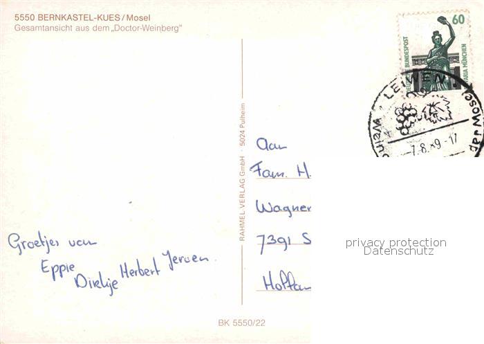 72886288 alte Postkarte Bernkastel-Kues Moselpartie vom Doctor-Weinberg postalisch gelaufen Erhaltung siehe scans [LiesaD40] KatCode: 11110007231008