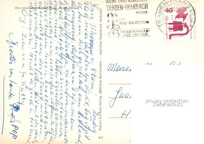 72935705 alte Postkarte Bernkastel-Kues Panorama Weinstadt an der Mosel Weinberge postalisch gelaufen Erhaltung siehe scans [FriedD77] KatCode: 11110007231008