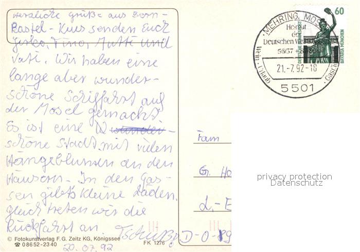 72970277 alte Postkarte Bernkastel-Kues Teilansichten Innenstadt Altstadt Fachwerkhaeuser Brunnen Mosel postalisch gelaufen Erhaltung siehe scans [FriedD77] KatCode: 11110007231008