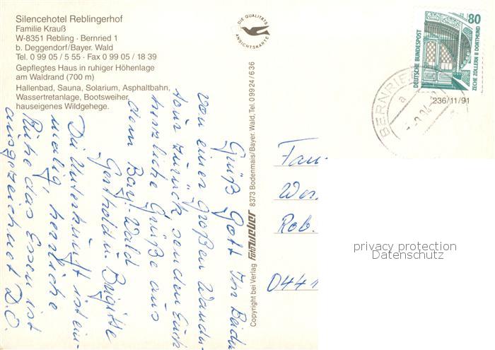 73841060 alte Postkarte Bernried Niederbayern Silencehotel Reblingerhof Gaststube Zimmer Terrasse postalisch gelaufen Erhaltung siehe scans [WerneD78] KatCode: 11110009271116