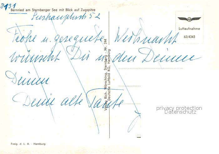 72646389 alte Postkarte Bernried Starnberger See Fliegeraufnahme postalisch gelaufen Erhaltung siehe scans [WerneD78] KatCode: 11110009190115