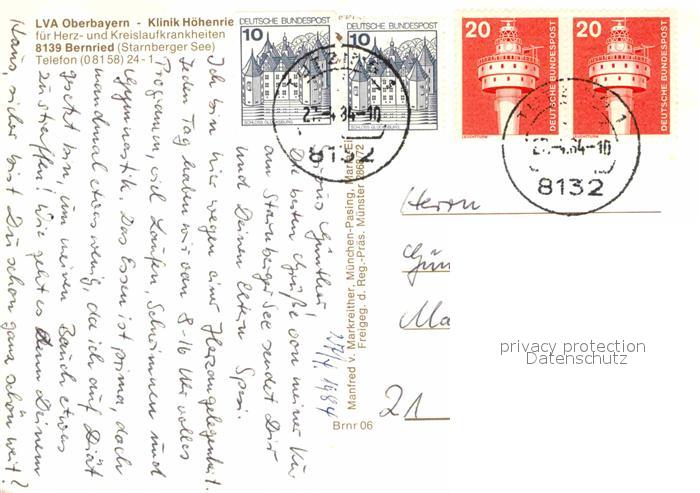 72775106 alte Postkarte Bernried Starnberger See Fliegeraufnahme Klinik Hoehenrie postalisch gelaufen Erhaltung siehe scans [AndreD76] KatCode: 11110009190115