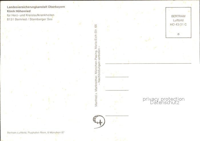72226833 Bernried Starnberger See Fliegeraufnahme Klinik Hoehenried postalisch nicht gelaufen Erhaltung siehe scans KatCode: 11110009190115
