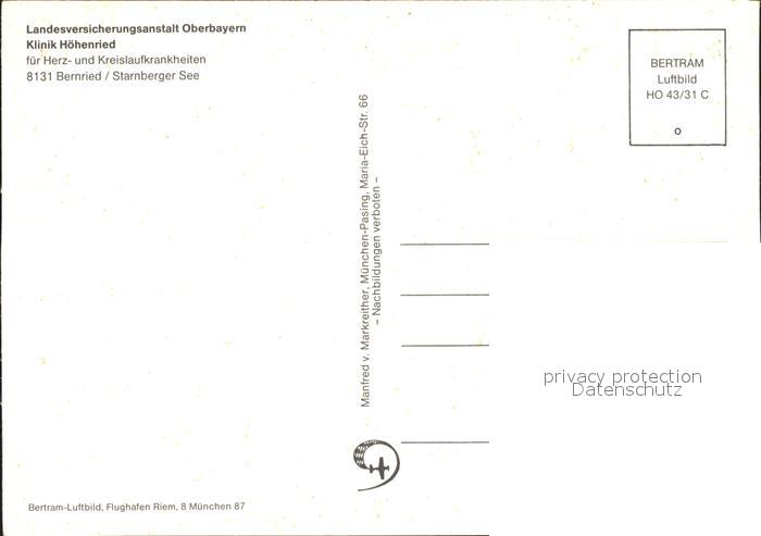 72226824 Bernried Starnberger See Fliegeraufnahme Klinik Hoehenried postalisch nicht gelaufen Erhaltung siehe scans KatCode: 11110009190115