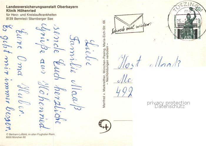 73228656 alte Postkarte Bernried Starnberger See Fliegeraufnahme Klinik Hoehenried postalisch gelaufen Erhaltung siehe scans [NatalD47] KatCode: 11110009190115