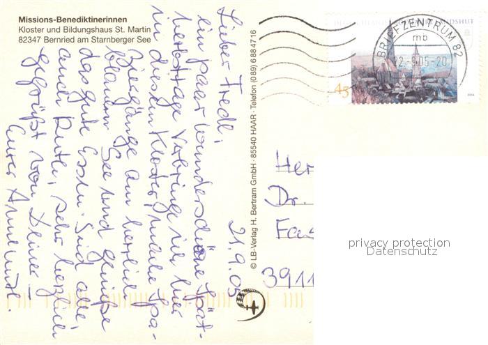 73621857 alte Postkarte Bernried Starnberger See Fliegeraufnahme Kloster Missions-Benediktinerinnen postalisch gelaufen Erhaltung siehe scans [LiesaD40] KatCode: 11110009190115