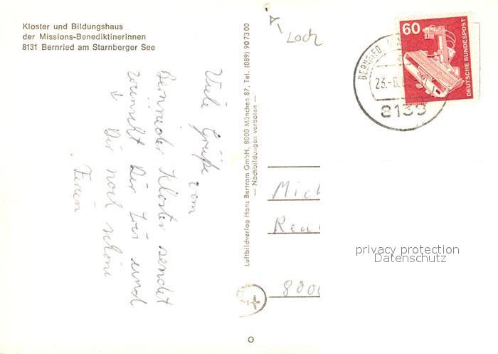 73173749 alte Postkarte Bernried Starnberger See Fliegeraufnahme Kloster und Bildungshaus der Missions-Benediktinerinnen postalisch gelaufen Erhaltung siehe scans [LiesaD40] KatCode: 11110009190115
