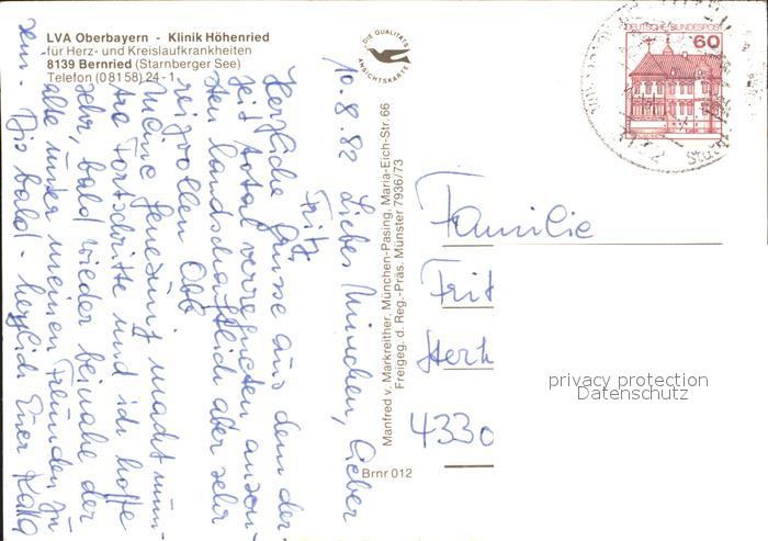 72333085 alte Postkarte Bernried Starnberger See Fliegeraufnahme LVA Klinik Hoehenried postalisch gelaufen Erhaltung siehe scans KatCode: 11110009190115