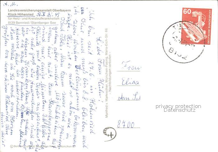 72291239 alte Postkarte Bernried Starnberger See Fliegeraufnahme mit Klinik Hoehenried postalisch gelaufen Erhaltung siehe scans KatCode: 11110009190115