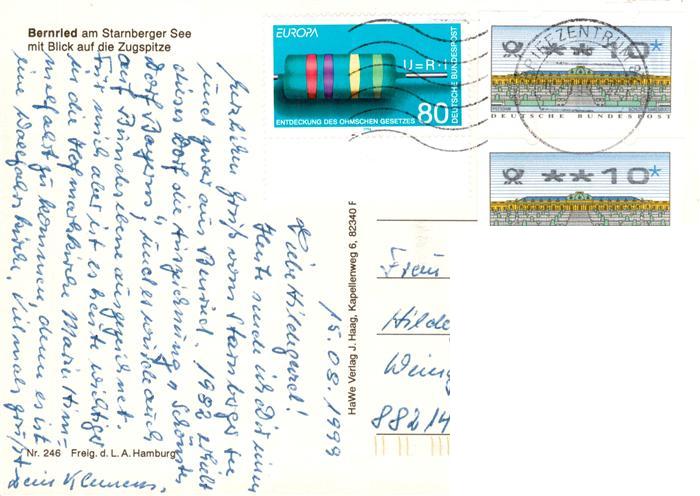 73878923 alte Postkarte Bernried Starnberger See Fliegeraufnahme mit Zugspitze postalisch gelaufen Erhaltung siehe scans [WerneD78] KatCode: 11110009190115