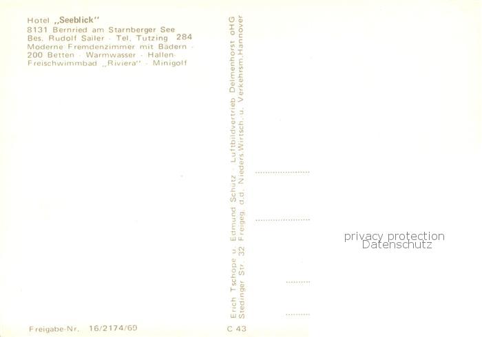73765869 Bernried Starnberger See Hotel Seeblick Fliegeraufnahme postalisch nicht gelaufen Erhaltung siehe scans [WerneD78] KatCode: 11110009190115